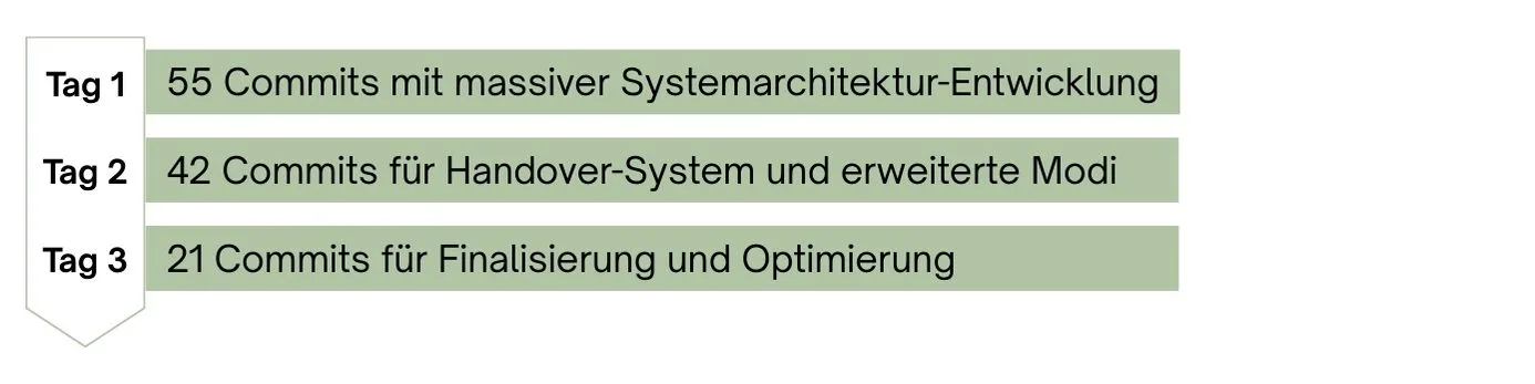 Tag 1 55 Commits mit massiver Systemarchitektur-Entwicklung