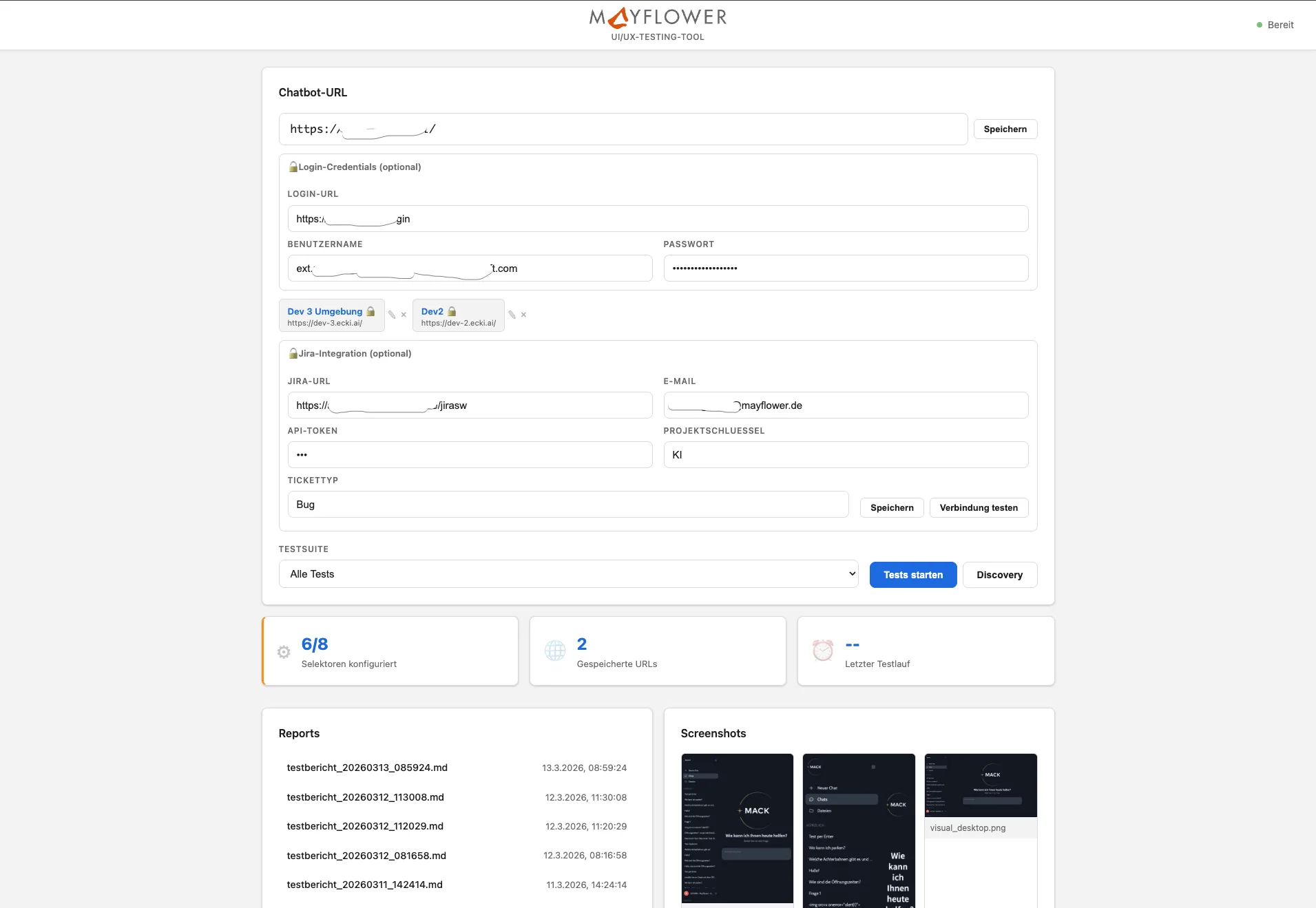 Das Tool läuft intern bei uns, wird automatisch aktualisiert und ist für alle Teammitglieder über den Browser bedienbar. Es ist so konzipiert, dass es sich auf beliebige Chatbot-Implementierungen ausrichten lässt, unabhängig von Technologie oder Plattform.